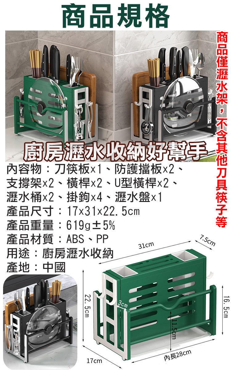 產品名稱:31x17cm刀具砧板瀝水收納架