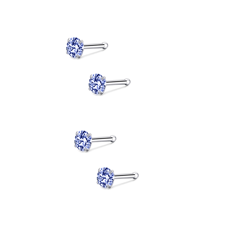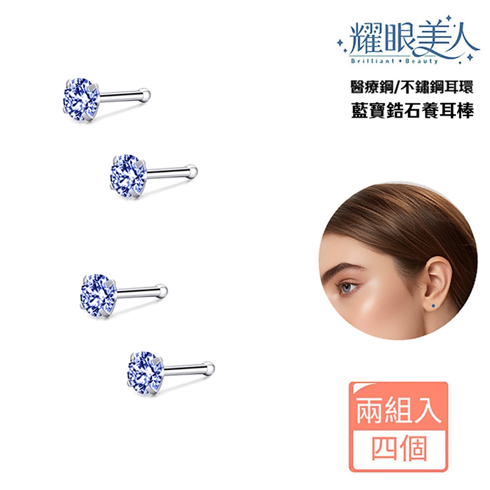 閃耀藍寶鋯石養耳棒醫療鋼鈦鋼耳環兩對入共四個