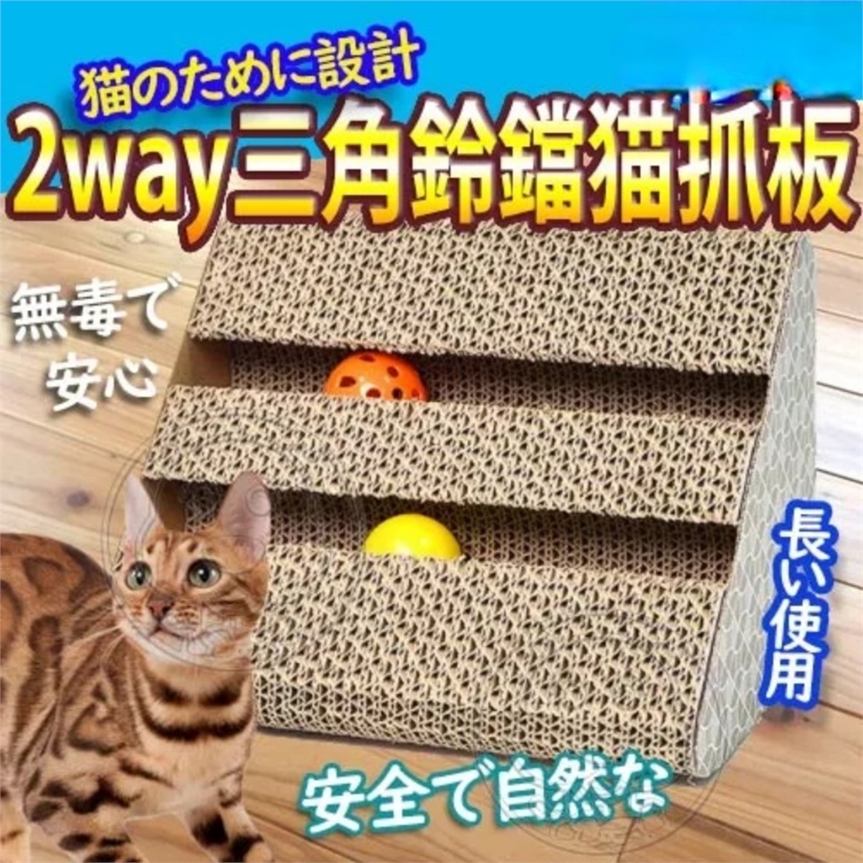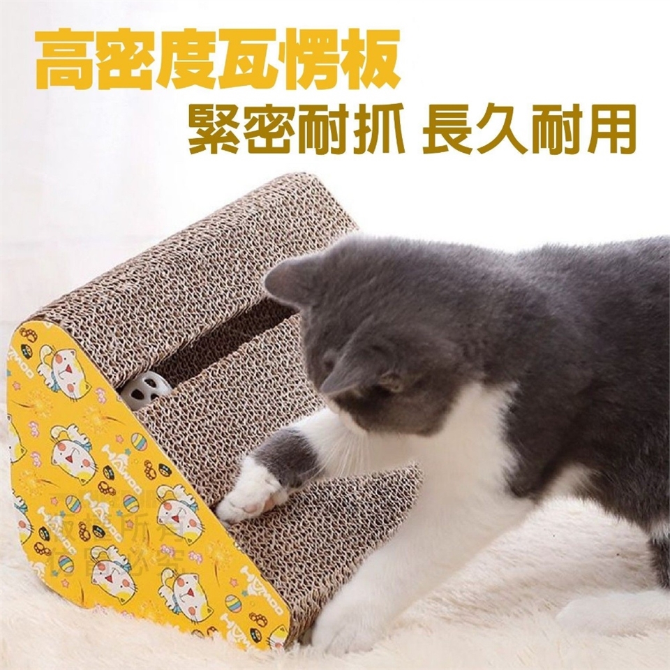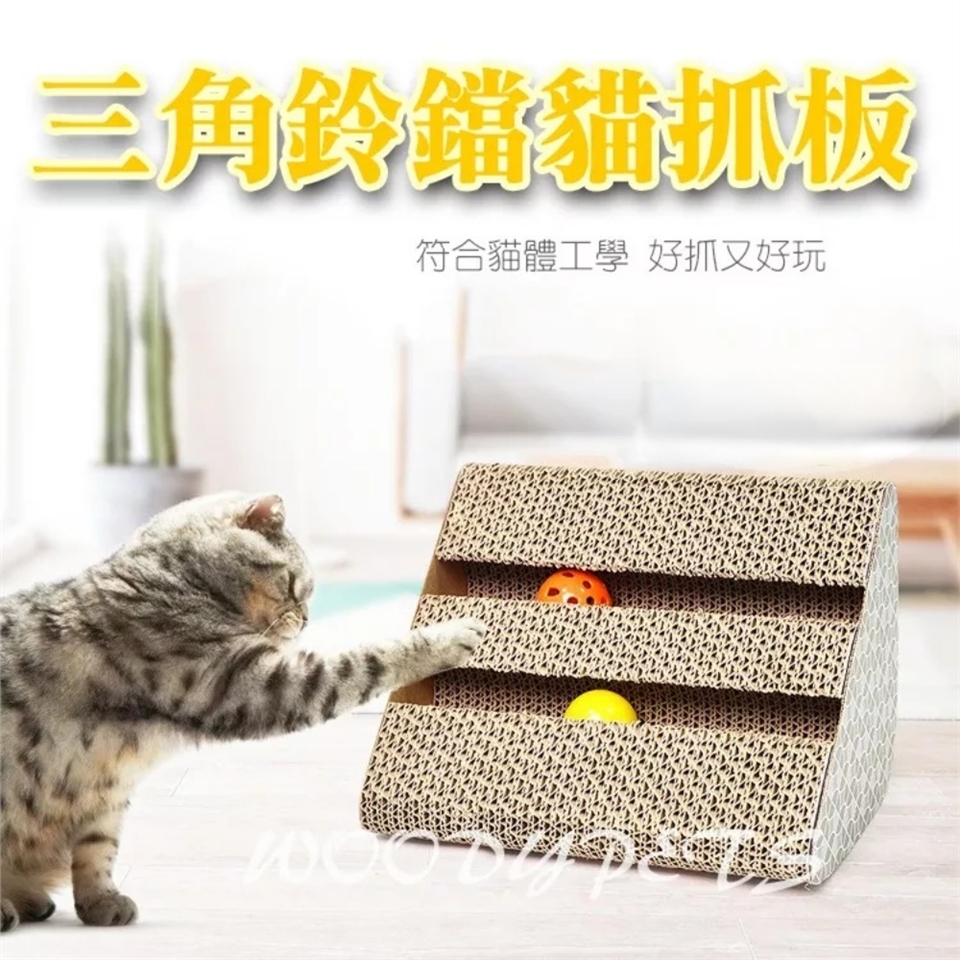 品名 : 三角型雙槽鈴鐺球球貓抓板