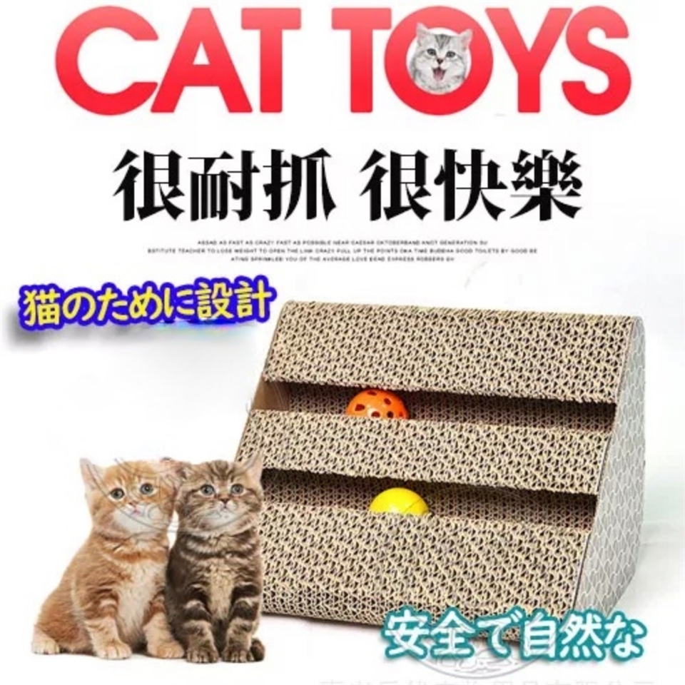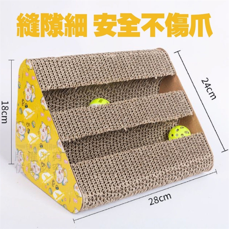 獨特金字塔帶鈴鐺球造型設計 , 您家貓咪將會愛上這個有 小球滾動及磨爪功能的抓板