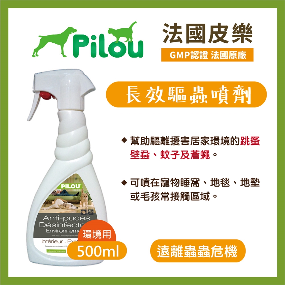 【Pilou 法國皮樂】長效驅蟲環境噴劑-犬貓環境用500ml (驅離居家環境跳蚤/壁蝨/細菌等寄生害蟲)