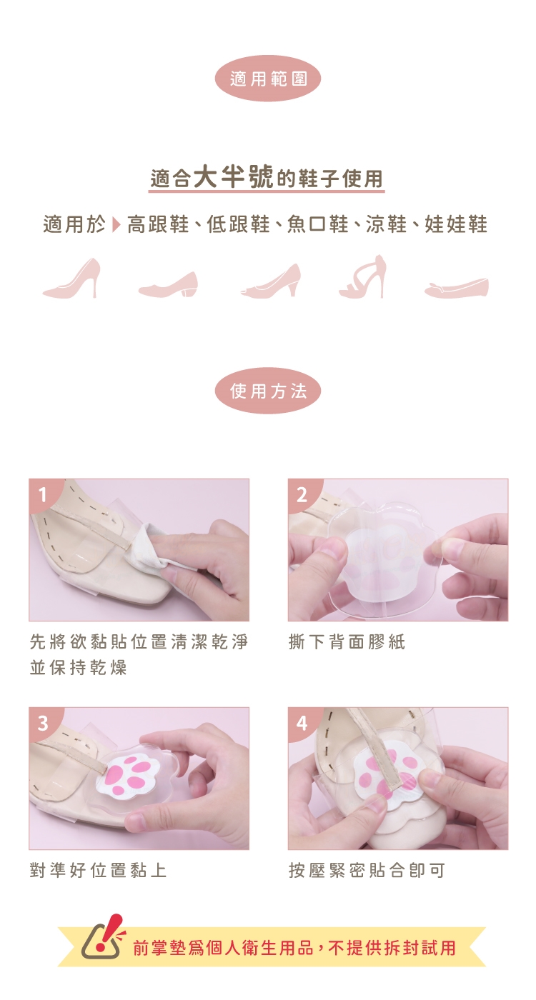 前掌墊為個人衛生用品,不提供拆封試用