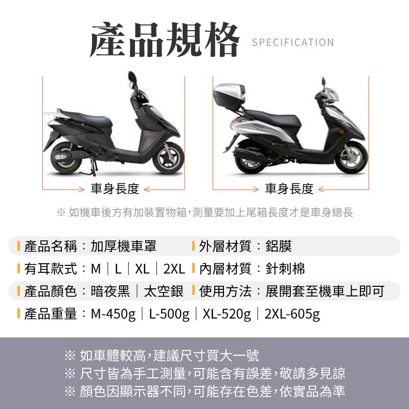 ◎如車體較高或機車後方有加裝置物箱等,建議尺寸買大一號。