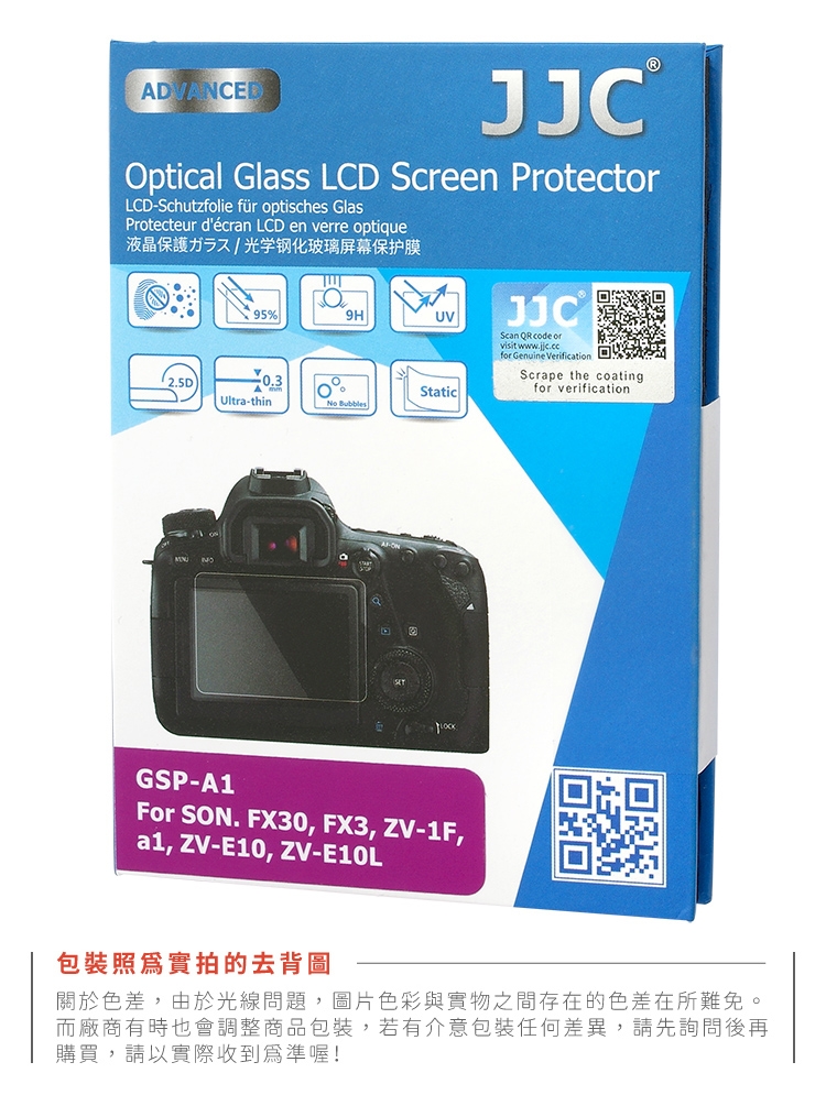 ●【品名】JJC副廠Sony索尼9H強化玻璃FX3 FX30 ZV-1II ZV-1F ZV-E10螢幕保護貼GSP-A1(95%透光率;抗刮油污)相機保護屏螢幕貼
