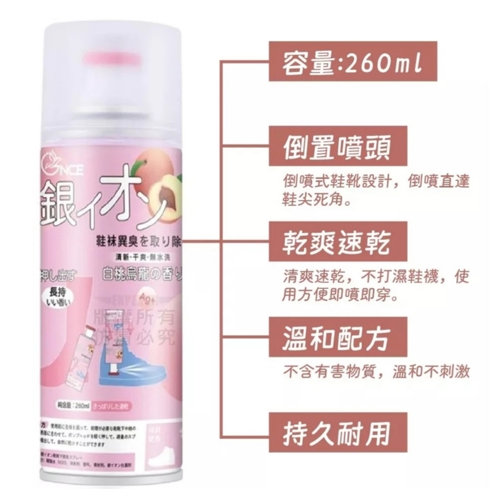 含奈米銀離子除臭會滲透至纖維內部可將鞋襪 鞋櫃除臭 大容量260ml