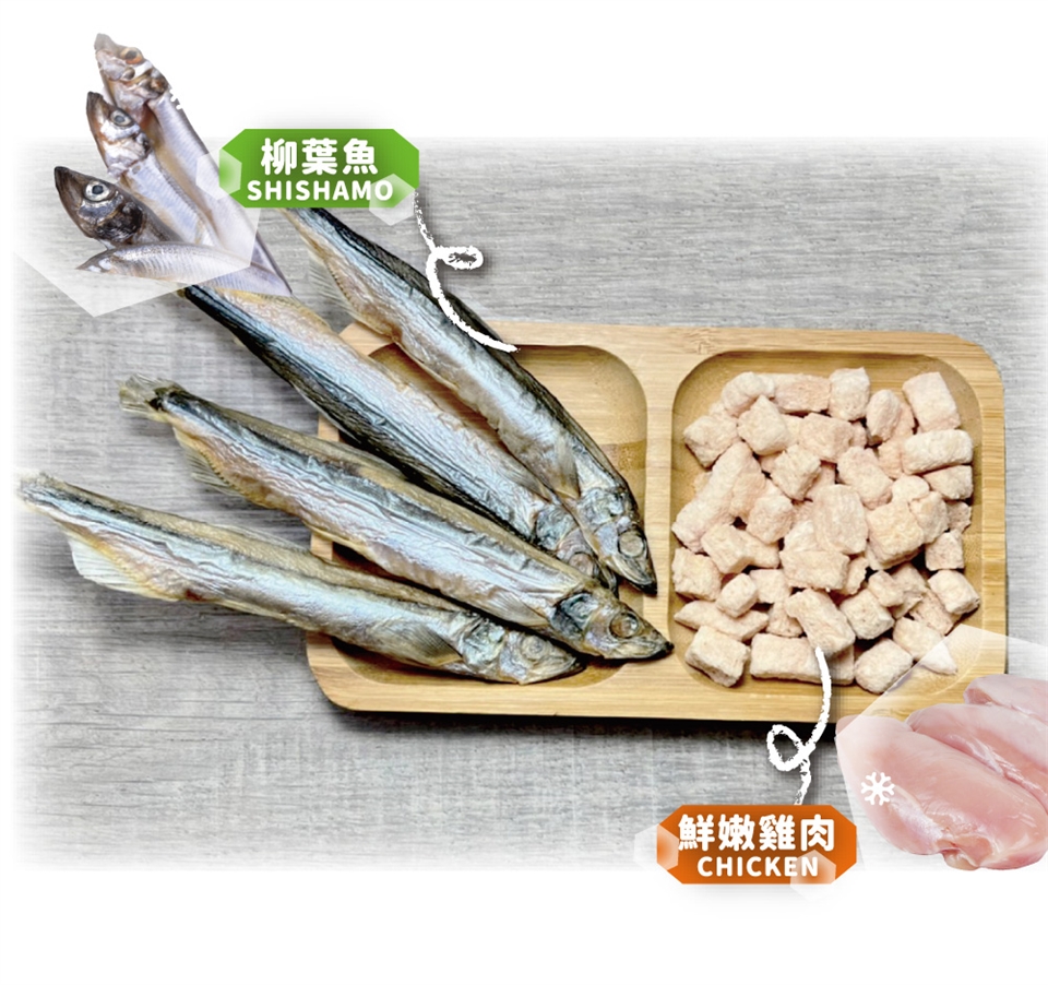 ⊙產地直送新鮮柳葉魚製成,高蛋白質、低熱量、低脂肪