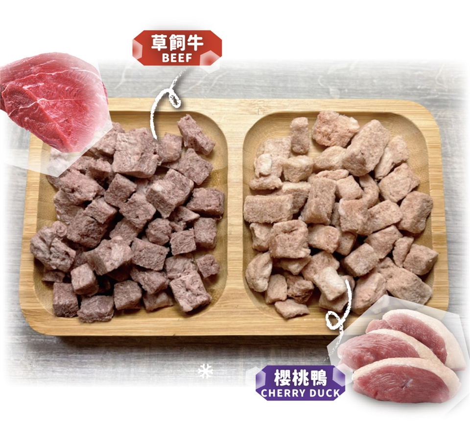 ⊙鮮嫩櫻桃鴨製成,高蛋白質、低熱量、低脂肪,低敏食材