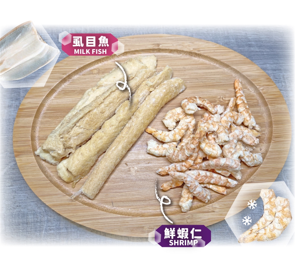 ⊙新鮮虱目魚製成,高蛋白質、低熱量、低碳水,天然牛磺酸來源