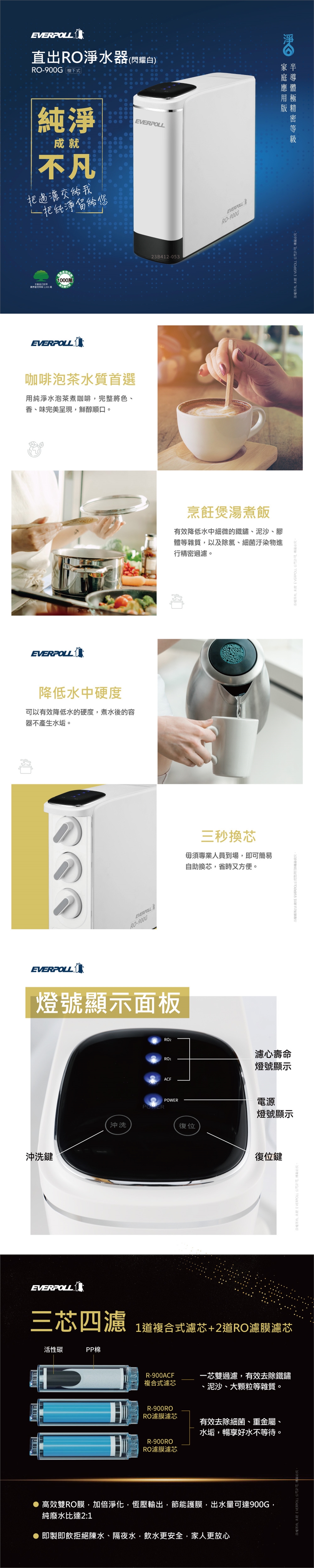 EVERPOLL愛科 直出RO淨水器 RO-900G閃耀白/逆滲透/RO機RO900G(此組合無搭配龍頭)