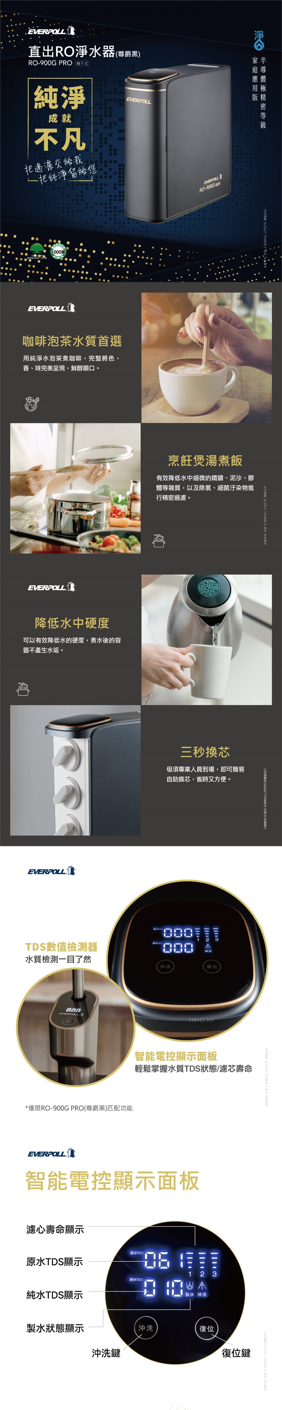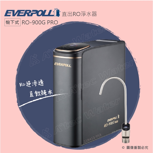 EVERPOLL愛科 直出RO淨水器RO-900G PRO尊爵黑+搭配智能水龍頭(TDS數值檢測器)