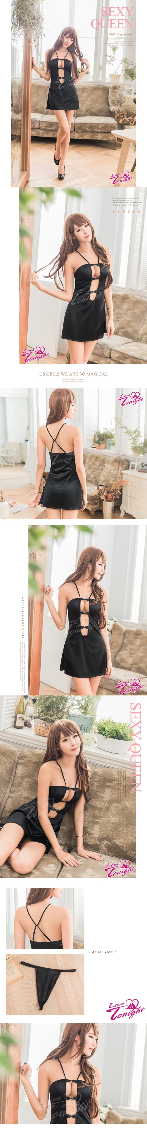此款極黑魅惑交叉肩帶性感睡衣,採用黑色柔緞材質作為主面料,