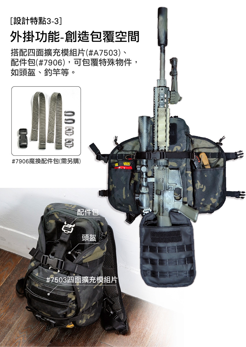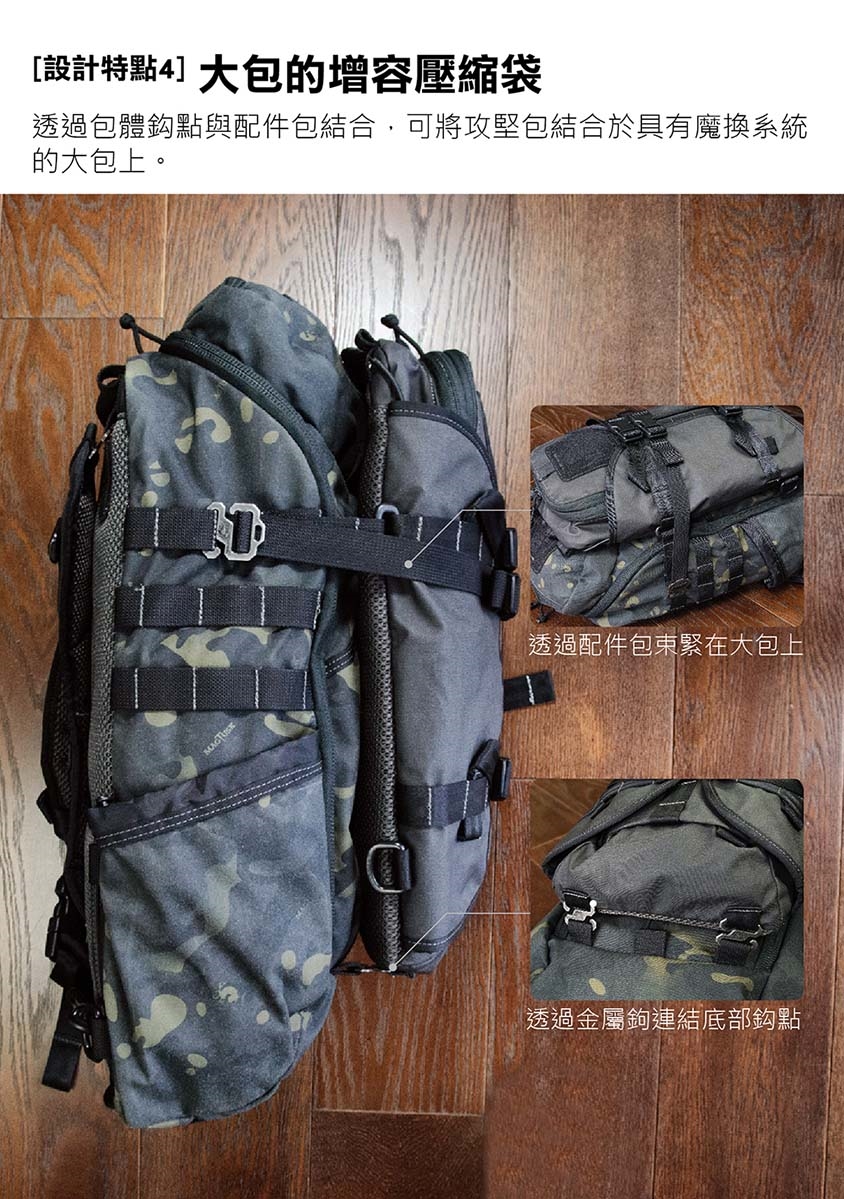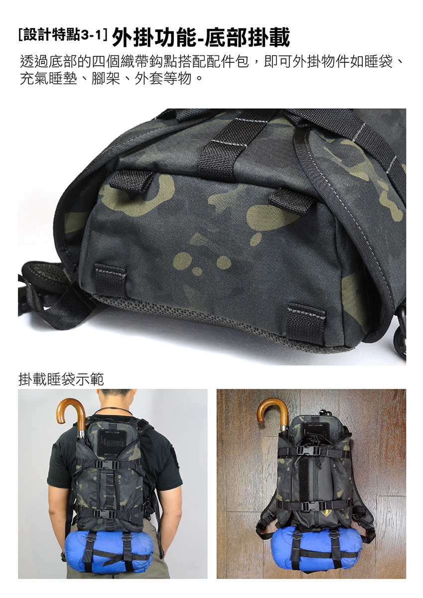■ 強大模組功能,不管睡袋、外套、腳架……皆可掛載