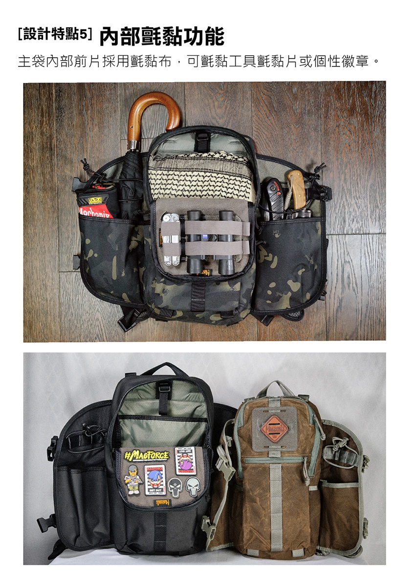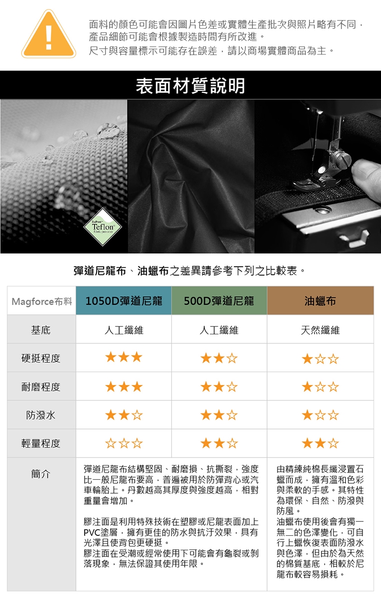 ■ 質感油蠟布、黑到霸氣膠注面、獨創暗黑迷彩