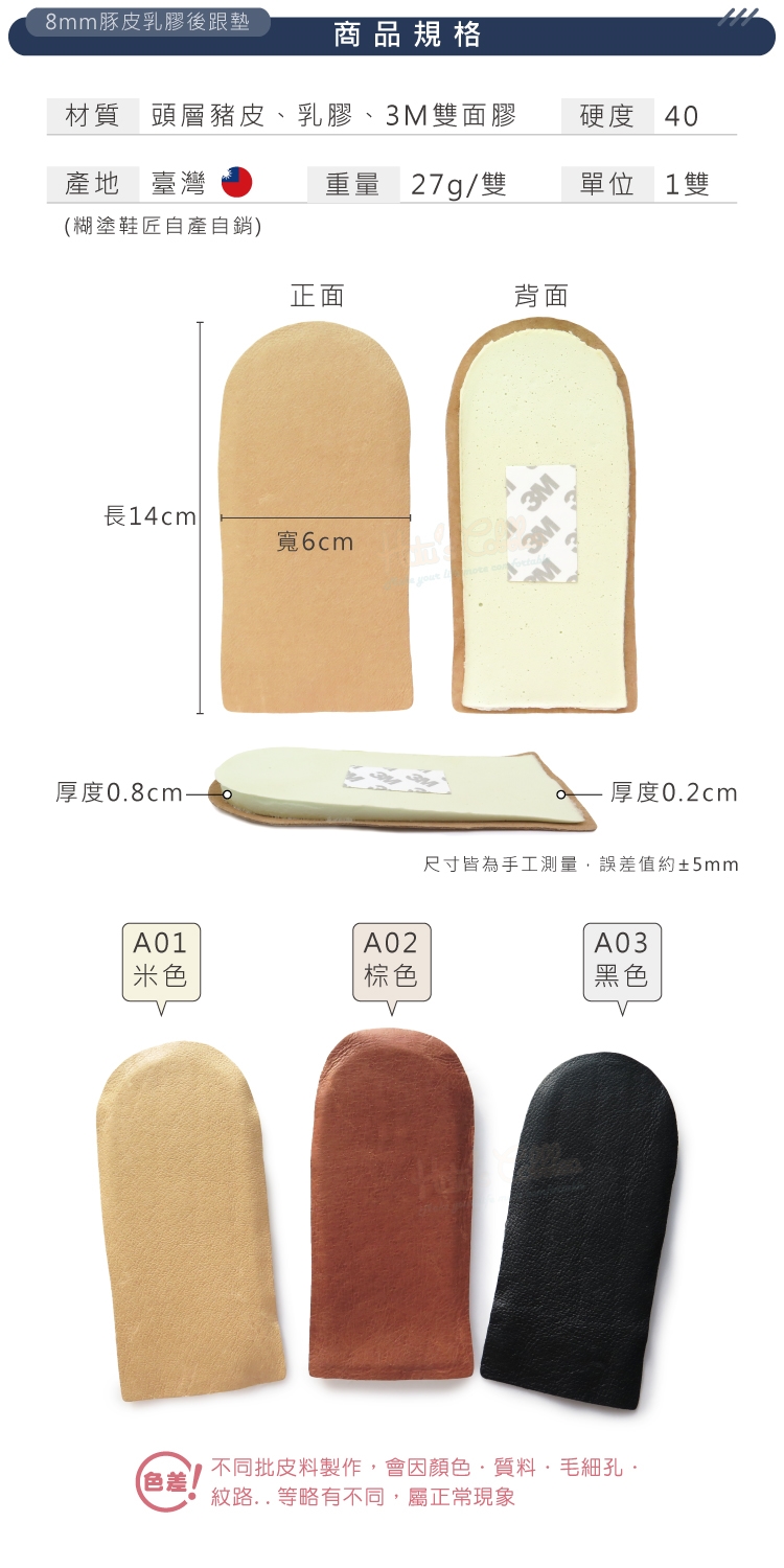 臺製豚皮乳膠後跟墊 臺製豬皮乳膠後跟墊