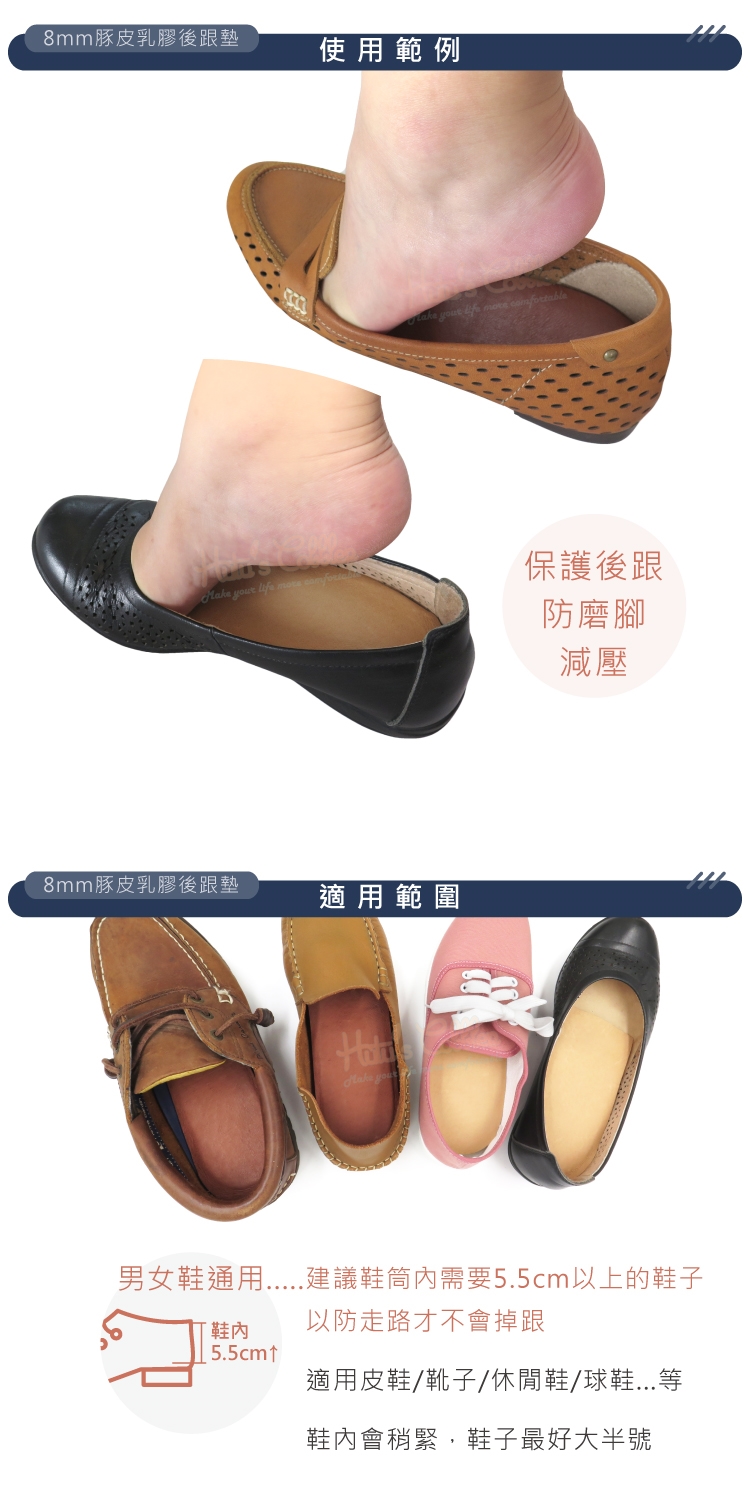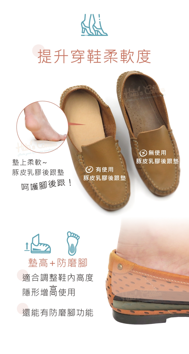 墊上柔軟豚皮乳膠後跟墊,呵護腳後跟!