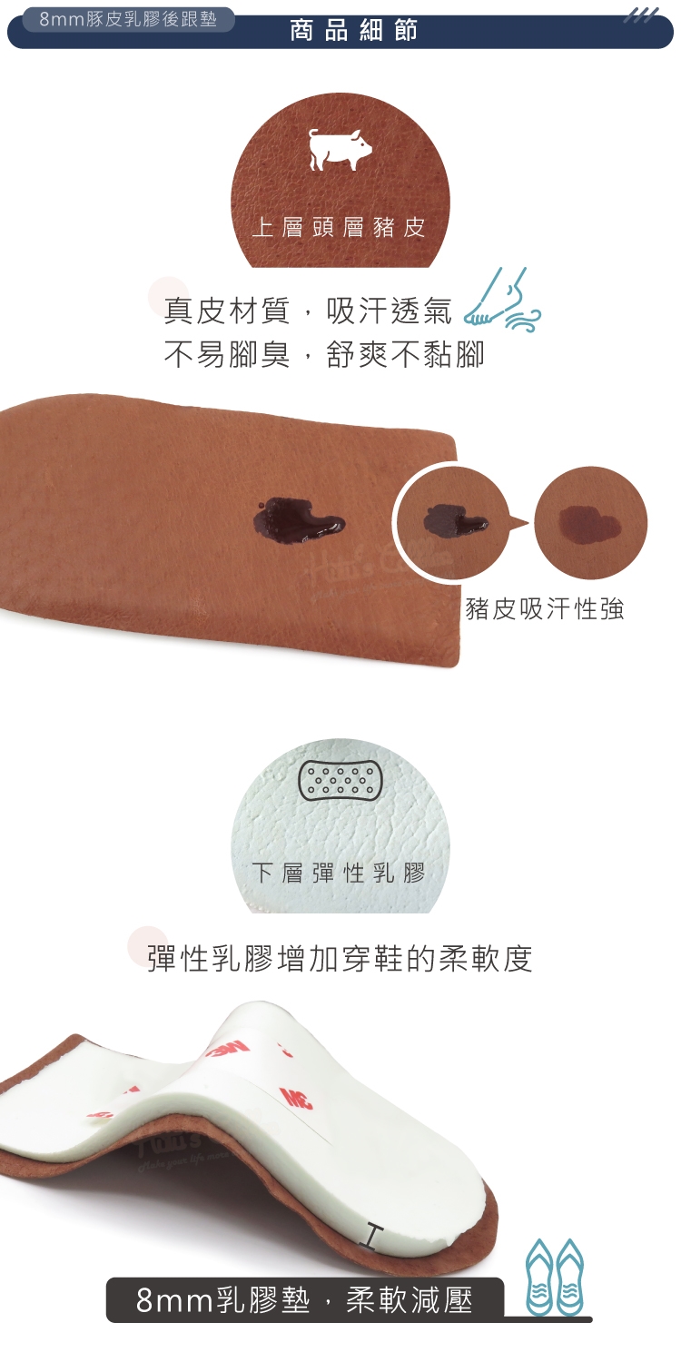 台灣製透氣豚皮乳膠後跟墊 台灣製透氣豬皮乳膠後跟墊