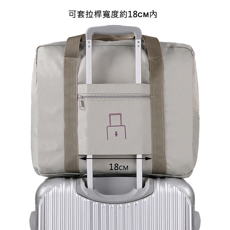 ◎背面可套拉桿,拉桿寬約18cm,拉桿套上有一拉鍊袋,可放隨身小物,適合20-26吋行李箱,一袋多用途,超方便