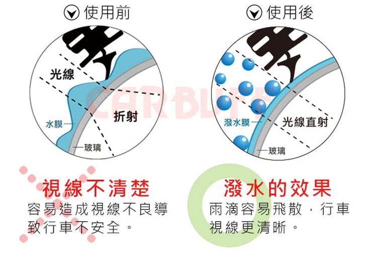 ◎撥水效果佳,水滴容易飛散,視線清晰