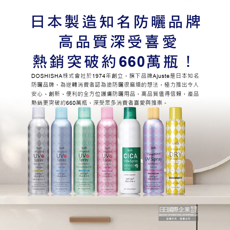 (9)為了保持防曬效果,噴塗量要足夠,並請2~3小時補噴。