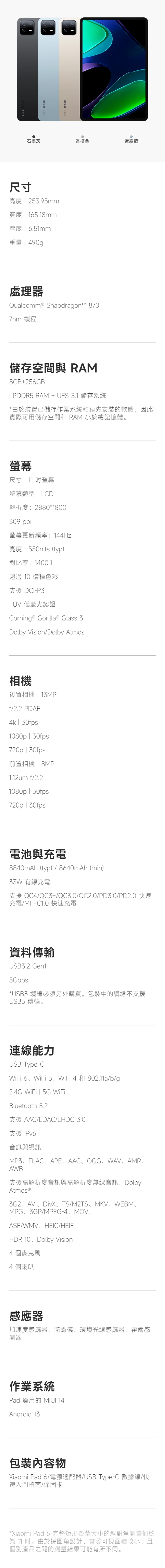 以上規格資料若有任何錯誤,以原廠所公佈資料為準