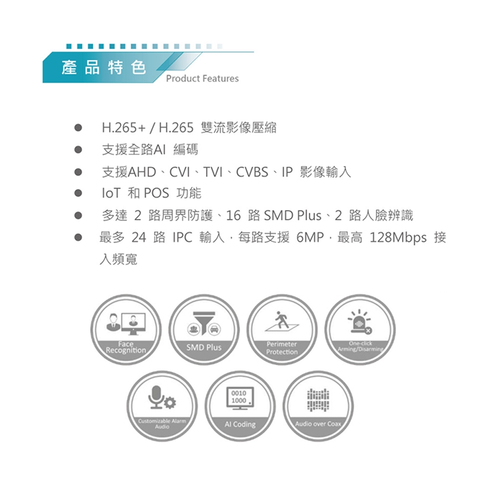 ◾ 多達 2 路周界防護、16 路SMD Plus、2 路人臉辨識