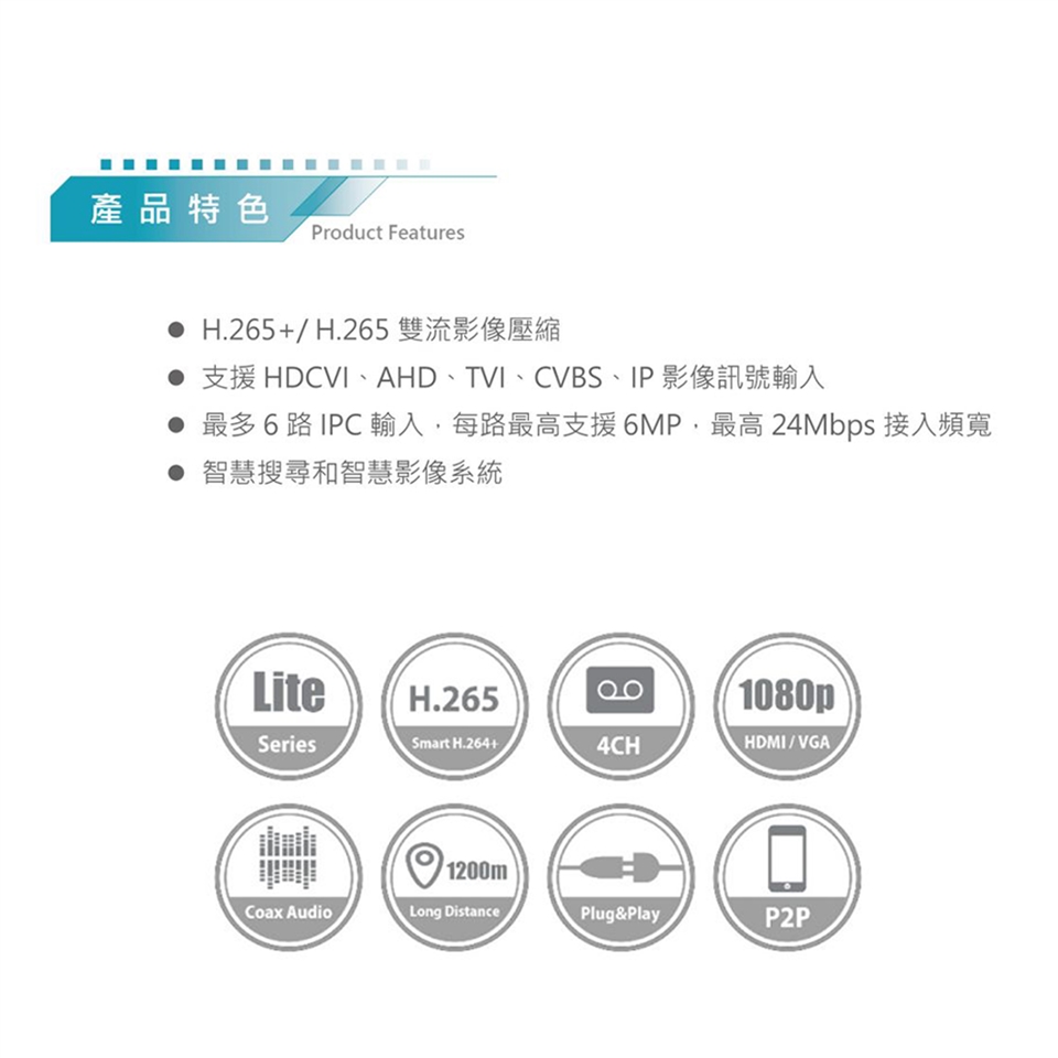 ◾ 支援 CVI、AHD、TVI、CVBS、IP 影像輸入