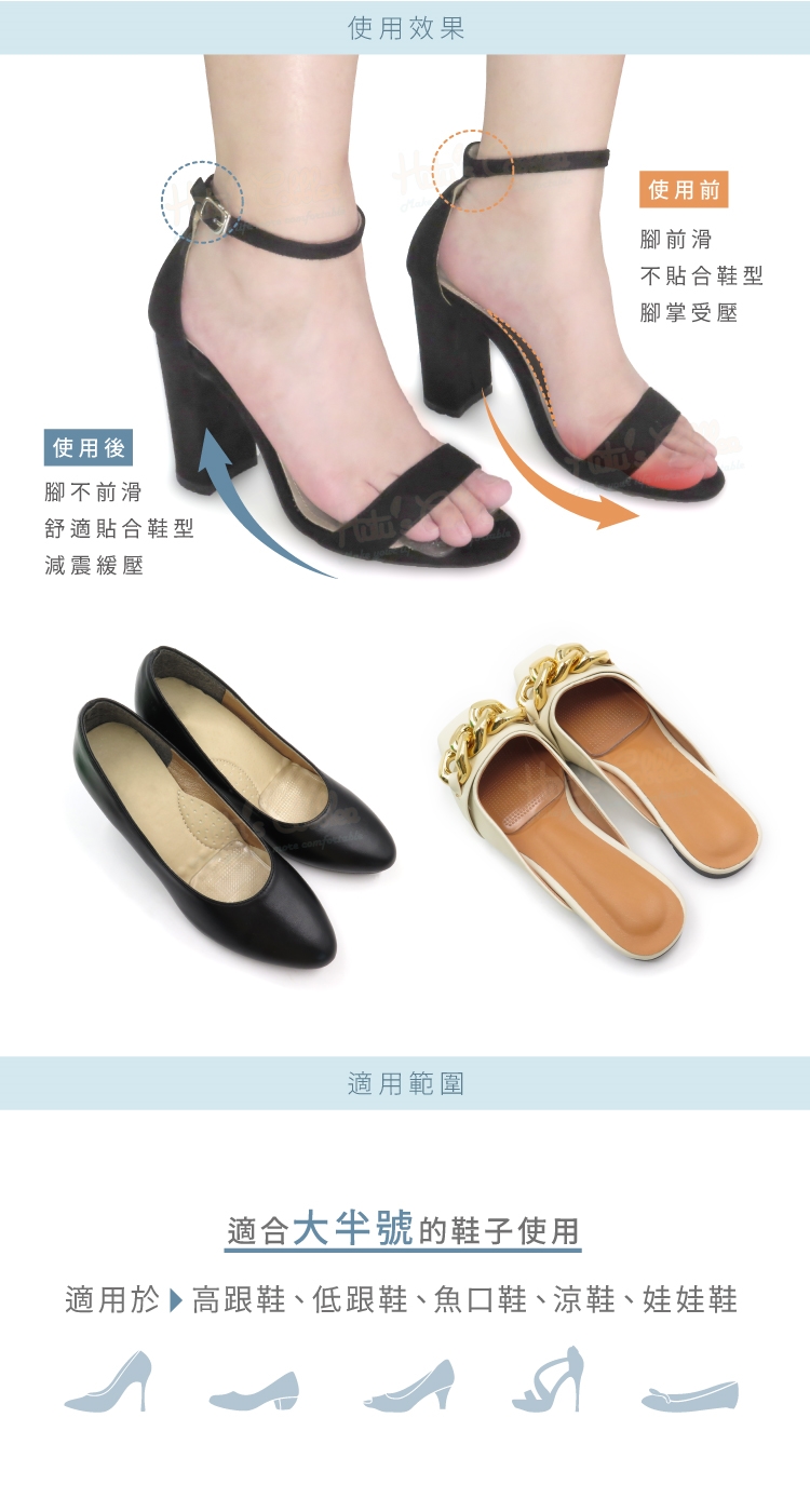 適用於高跟鞋、低跟鞋、魚口鞋、涼鞋、娃娃鞋