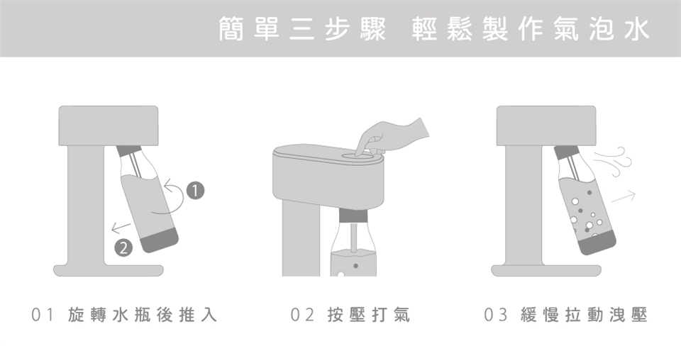 1. 請勿使用「水」以外的飲品製作氣泡水