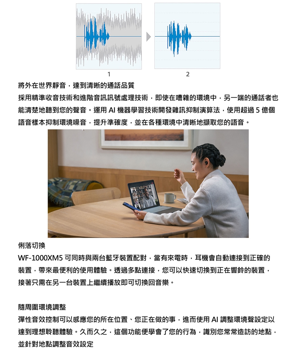 電池續航力(連續通訊時間)| 最長6小時(降噪功能開啟),最長7小時(降噪功能關閉)