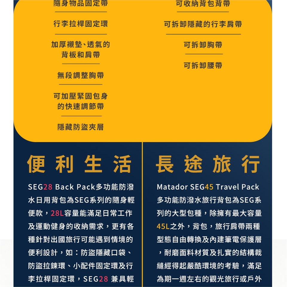 品名:【Matador 鬥牛士】SEG28 Backpack 多功能防潑水日用背包