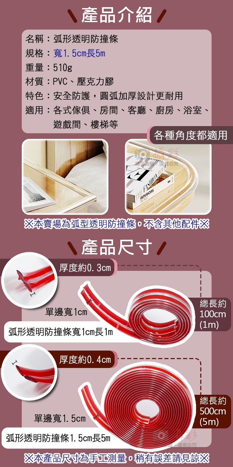 ※本賣場為弧形透明防撞條1.5cm長5m,另有其他規格,歡迎至賣場選購※