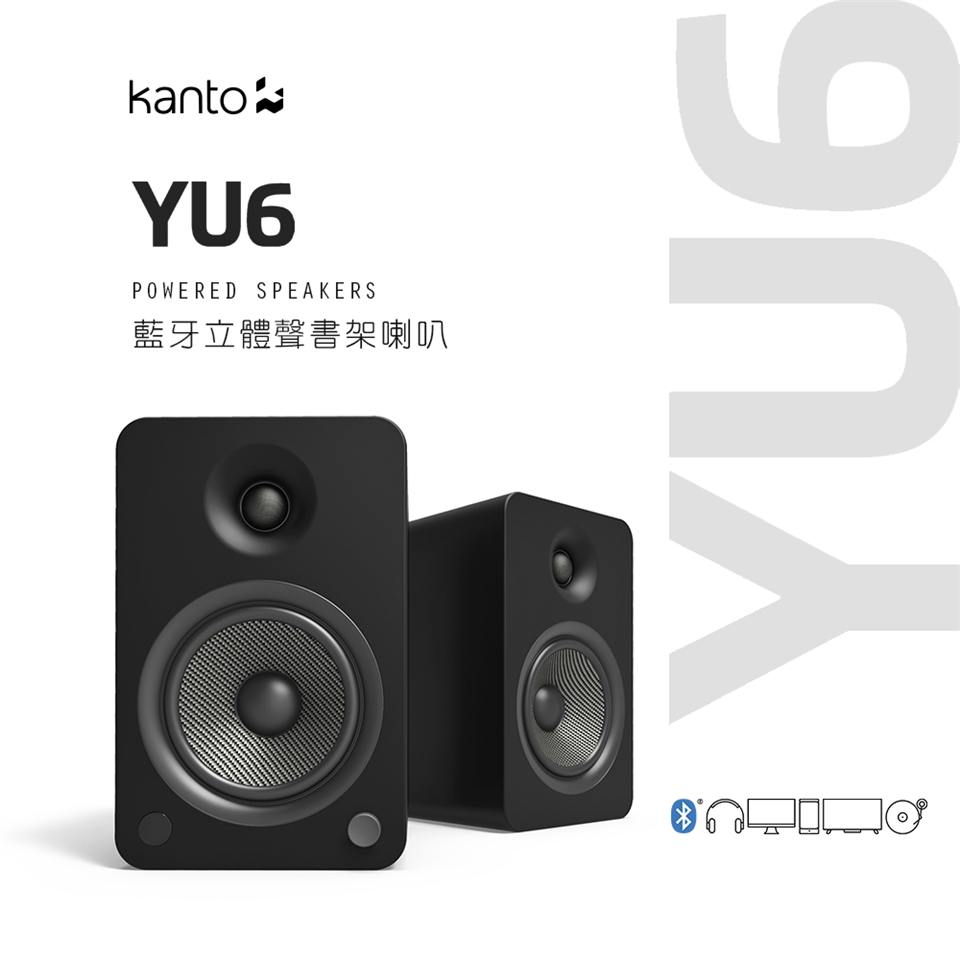 【Kanto YU6 藍牙立體聲書架喇叭-黑色啞光款】