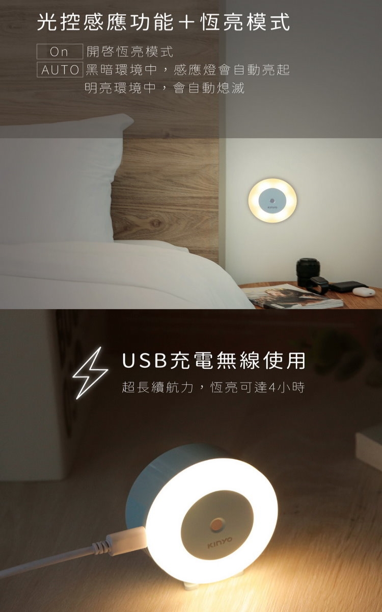 【KINYO】USB充電式光控感應燈-黃光(SL-4390)