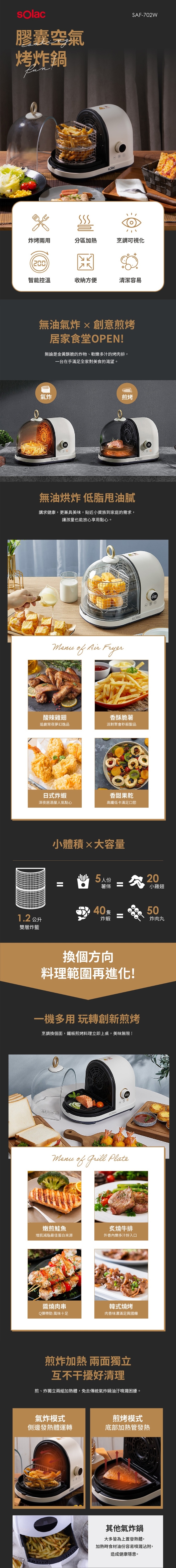 西班牙SOlac 膠囊空氣烤炸鍋 SAF-702W