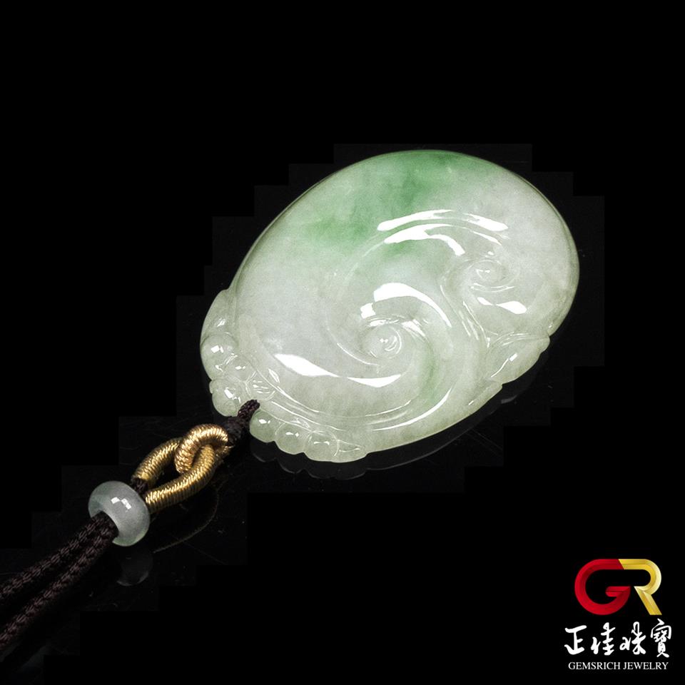 主角:翡翠 芙蓉飄陽綠 經典如意吊墜 天然A貨翡翠 翡翠吊墜|特製可調式棉繩
