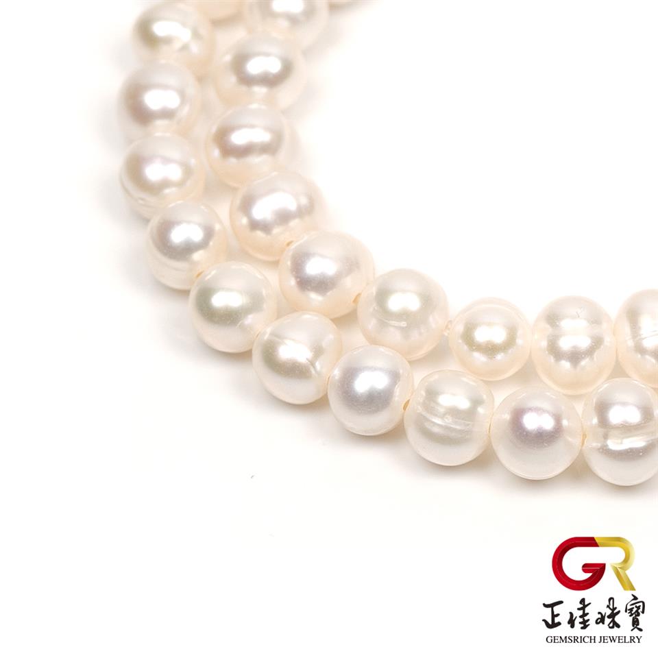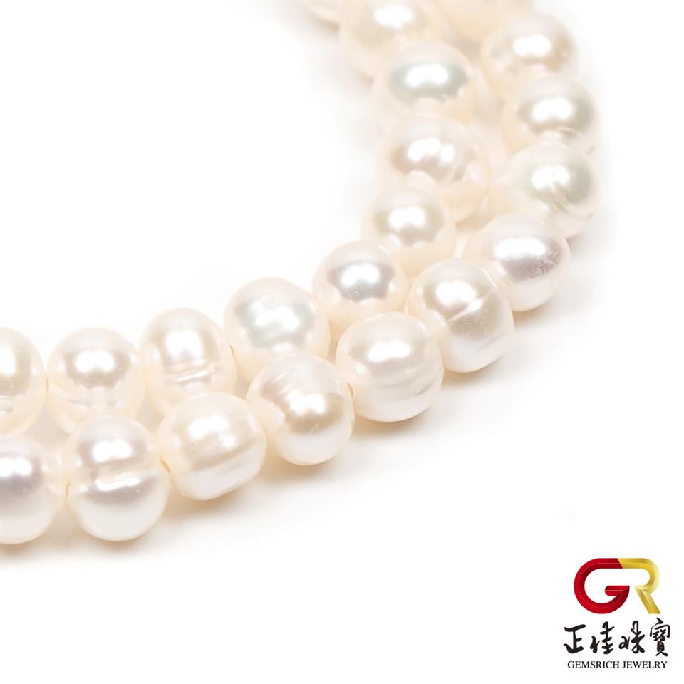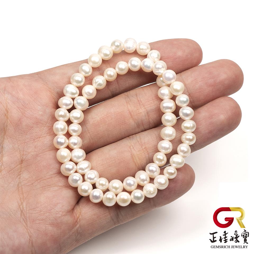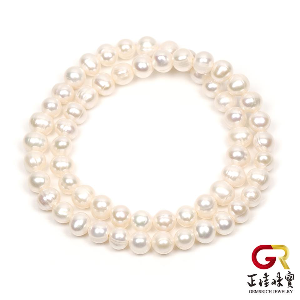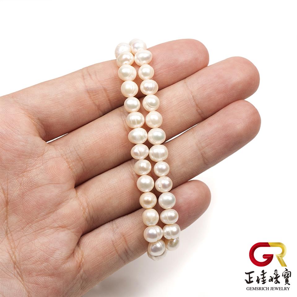 主角:珍珠 經典潤澤隨形 淡水珍珠雙圈手珠|日本彈力繩