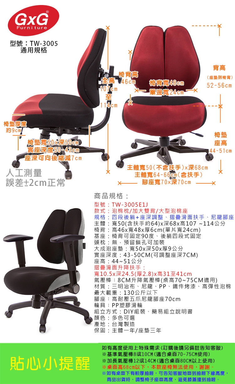購買注意事項:本座椅高度,均以搭配標準桌高70~75CM使用。