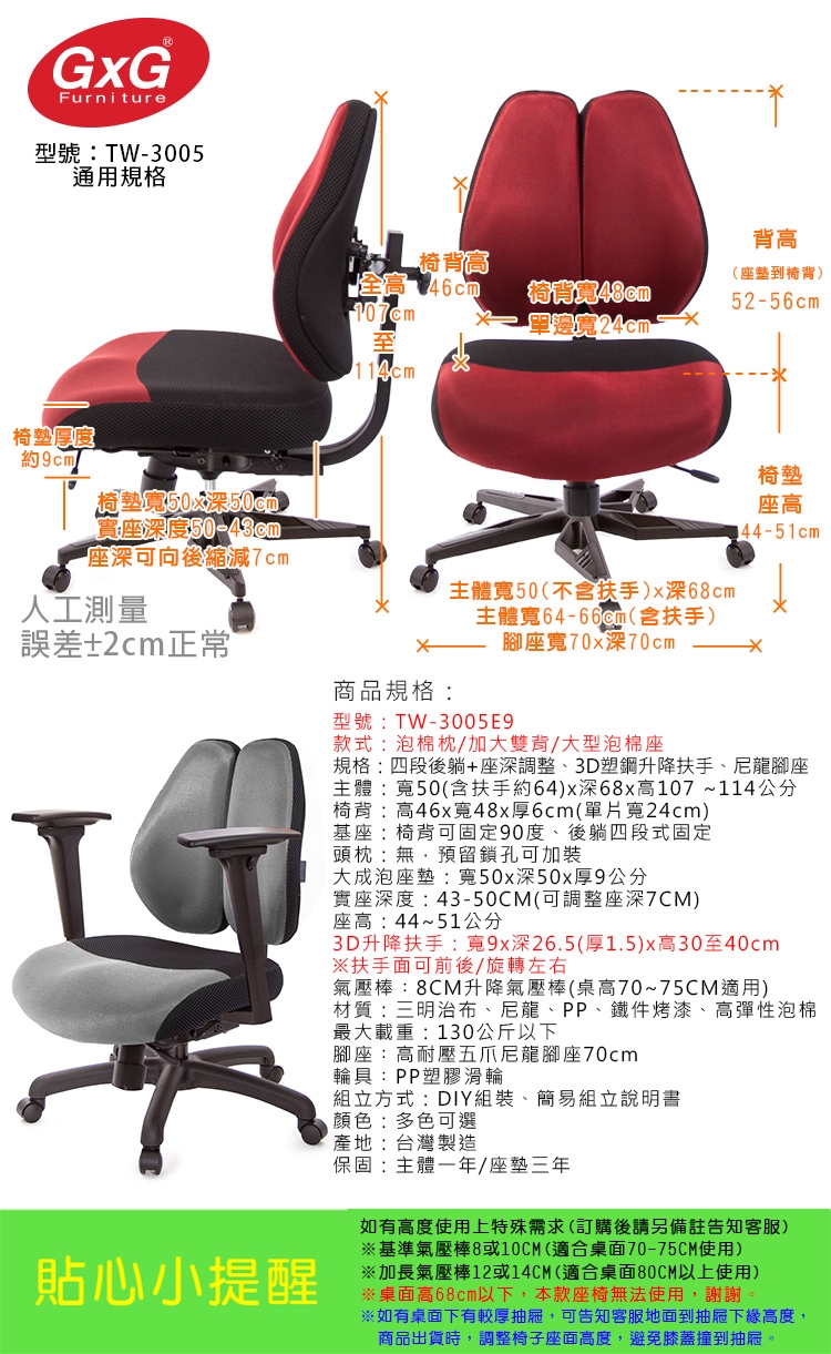 TW-3005為大尺碼KING SIZE座墊,加寬加深座墊深度外,座墊厚度也加厚, 適合體重90KG以上使用者(最大載重130kg以下),