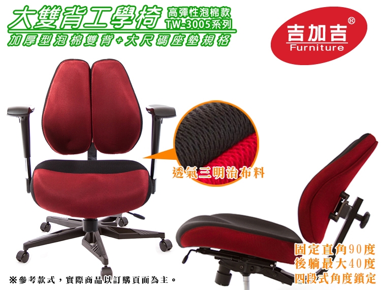 TW-3005高背款雙背椅,適合身高155~190CM使用者,椅背採用人體工學設計,造型看似烏魚子、或是像兩個人體肺的型狀,這樣的設計,是讓我們在乘坐後靠時,能更貼合我們背部,緩和脊椎的重力,降低尾椎壓力,給長時間工作者一張,聰明、會改善坐姿習慣的智慧椅。