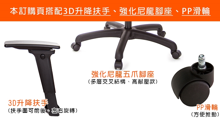 本訂購頁規格:3D升降扶手、尼龍腳座、PP滑輪