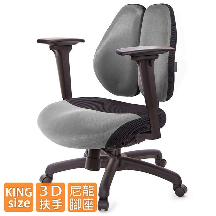 人體工學雙背設計,改善長時間座在椅子上,覺得腰部貼合度不足,有懸空或不夠沉穩的感覺,改良式的雙背背墊,除了完整包覆性外,更提供了『左右彈性』、『上下貼合』、『彈力緩衝』等特性,並有多國國際結構專利認證(台灣、德國、日本、美國、中國等),原廠專利、技術100% Made in Taiwan台灣製造。