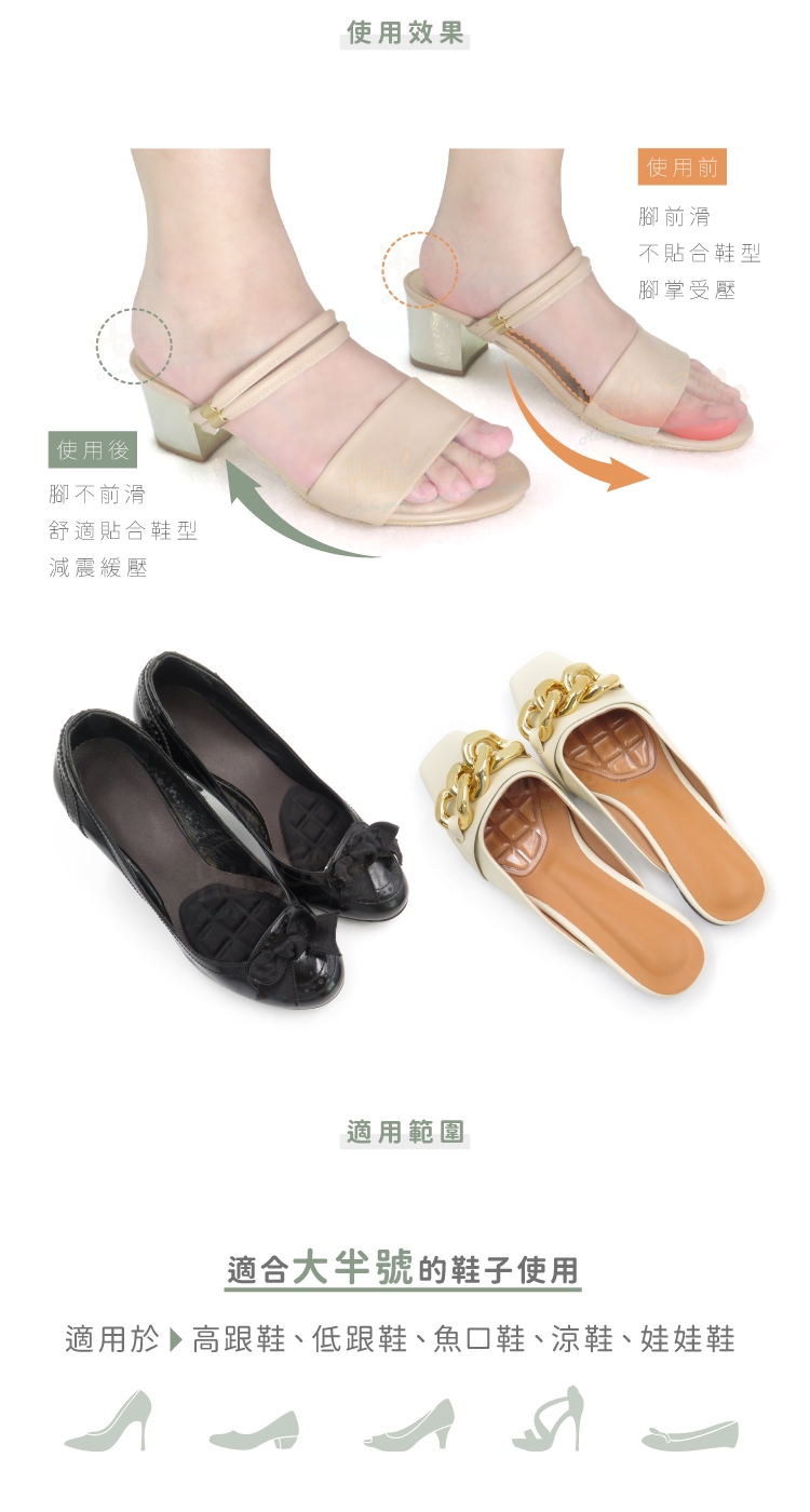 適用於高跟鞋、低跟鞋、魚口鞋、涼鞋、娃娃鞋