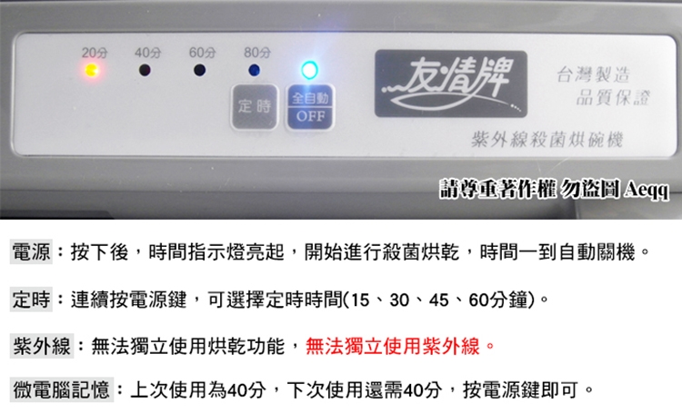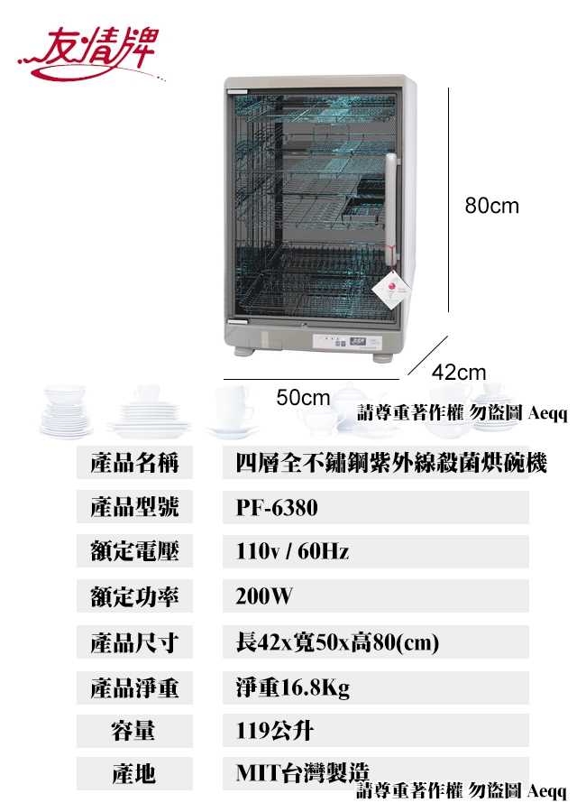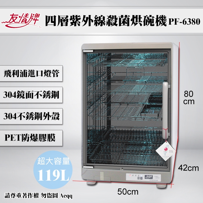 【友情牌】119公升四層全不繡鋼紫外線殺菌烘碗機(PF-6380)