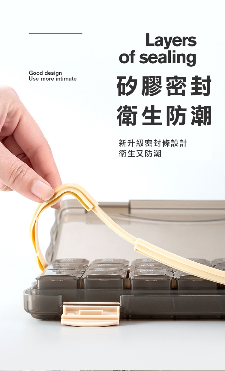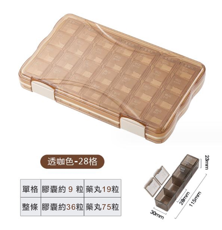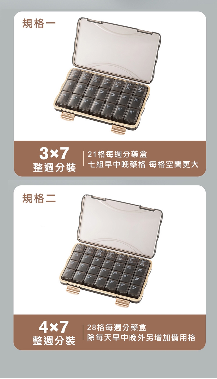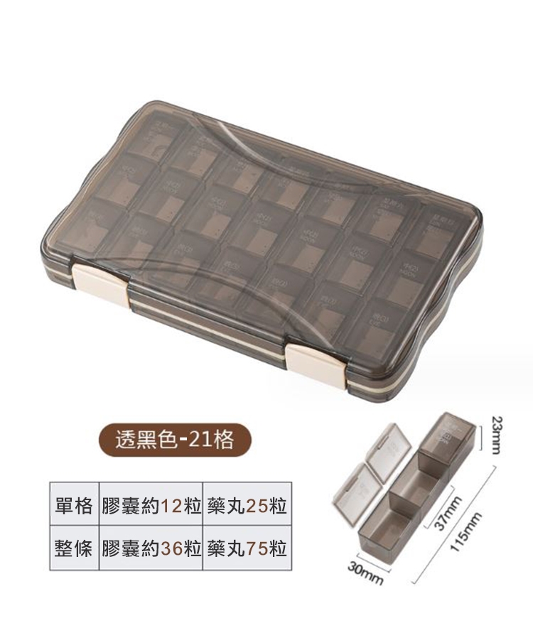常常忘記吃藥或者找不到藥物嗎?出門帶一整包藥物好麻煩...便攜可拆裝衛生密封七日藥盒,大容量可裝七日份,可拆裝出門只需帶一條內盒,便利好攜帶,分格印刷早、中、晚+(備註),最適合長輩時常忘記有沒有吃藥了,食品級用PP材質,防潮矽膠密封條水,每格區格分明,分裝不變質,讓吃藥變得更簡單更有效率!還你一個健康身體~