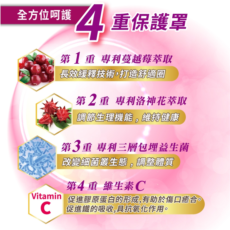 ◆嚴選北美紅寶石Cran-Max®專利蔓越莓,高倍濃縮全果實萃取,含有豐富的「特殊A型花青素」。