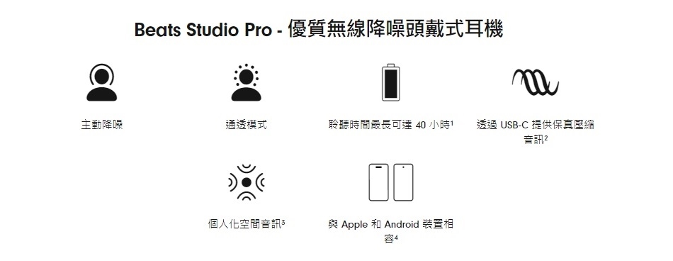 - 透過 Beats 最強大的專屬原音平台,享受沉浸式聆聽體驗。