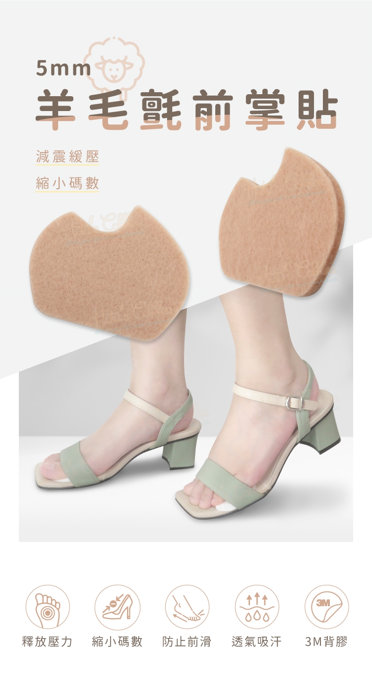 羊毛氈材質能柔軟支撐前掌,讓雙腳行走舒適
