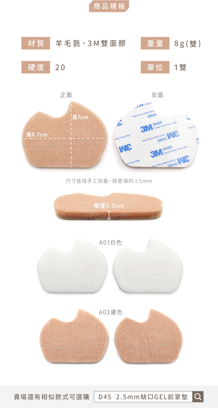 前掌防滑墊 前掌穩足墊 海綿前掌墊 羊毛氈前掌墊 缺口GEL前掌墊 缺口半墊