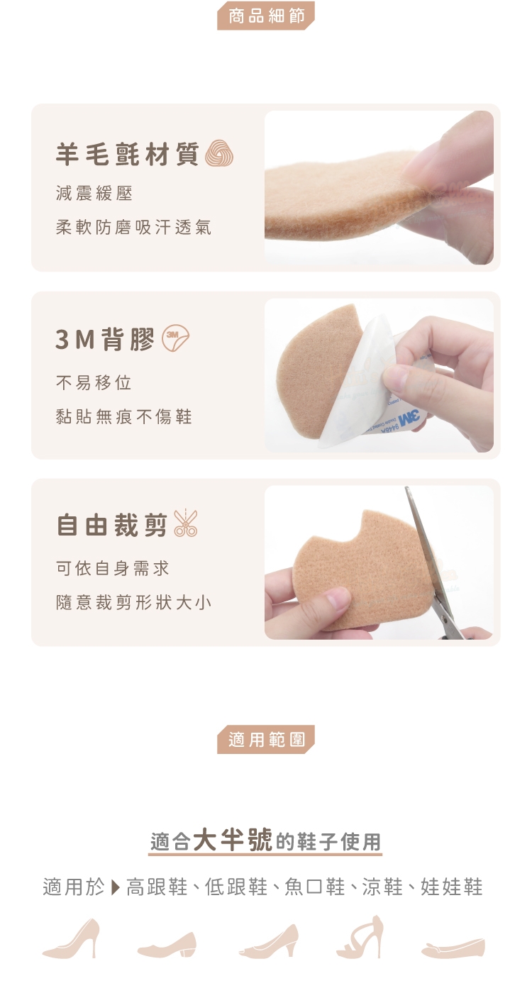 羊毛氈材質 加厚前掌墊 毛氈防滑墊 毛氈半墊 足心墊 腳掌墊