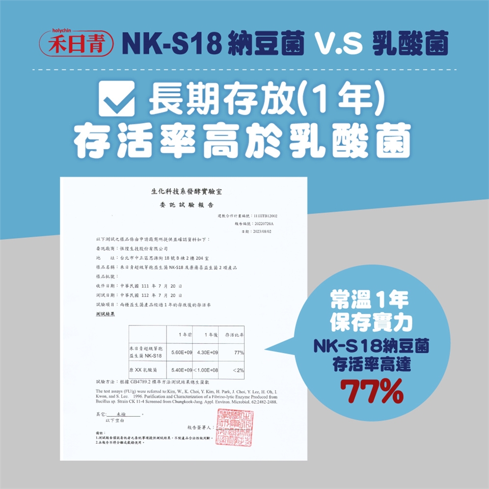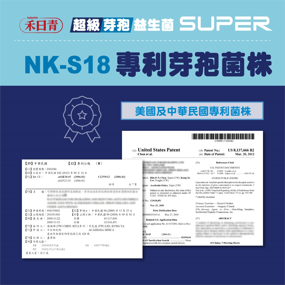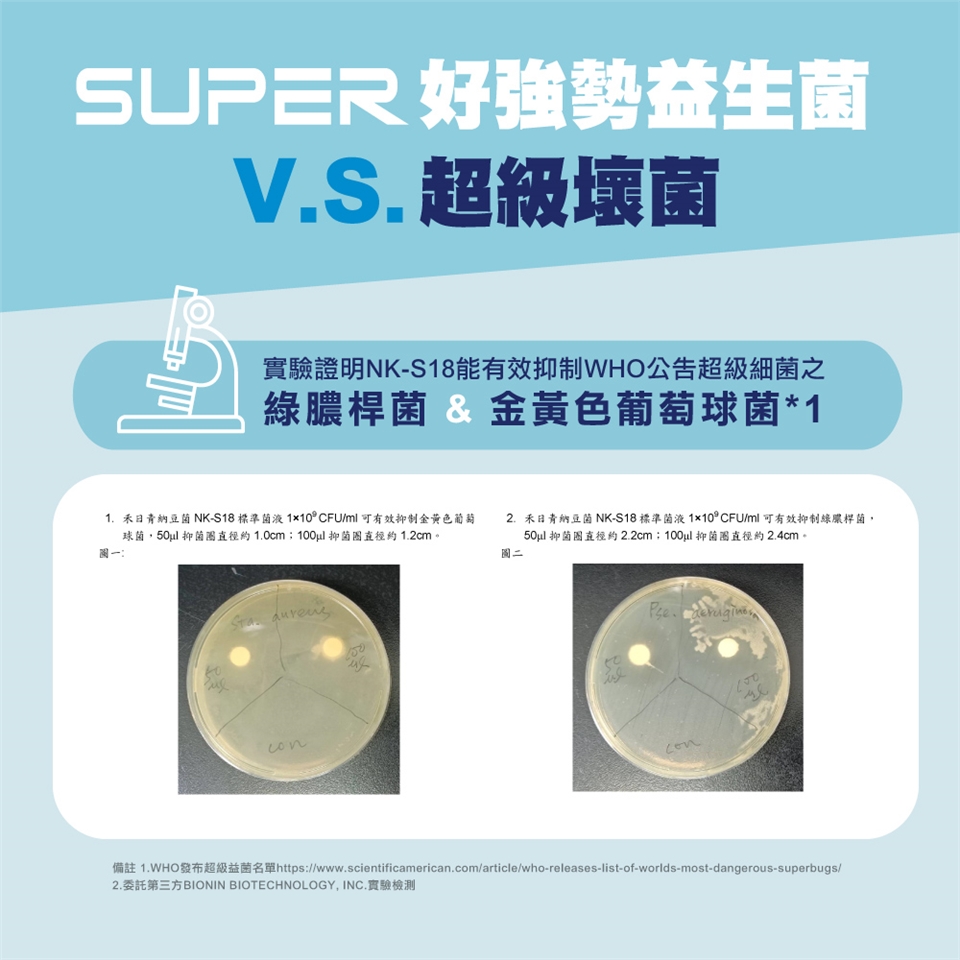 【成份】芽孢型納豆菌(美國專利菌株)、芽孢乳酸桿菌、植物乳桿菌、乳雙歧桿菌、短雙歧桿菌、乾酪乳桿菌、副乾酪乳桿菌、醱酵乳桿菌、鼠李糖乳桿菌、嗜熱鏈球菌、嗜酸乳桿菌、長雙歧桿菌、兩歧雙歧桿菌、乳酸乳桿菌、羅伊氏乳桿菌、瑞士乳桿菌、果汁粉(砂糖、麥芽糊精、橘子濃縮汁、氧化澱粉(樹薯)、檸檬酸、檸檬酸鈉、蘋果酸、香料、β-胡蘿蔔素) 、麥芽糊精、黃豆粉、酵母粉、赤藻糖醇(甜味劑)玉米澱粉、香料粉、DL-蘋果酸、木寡糖。